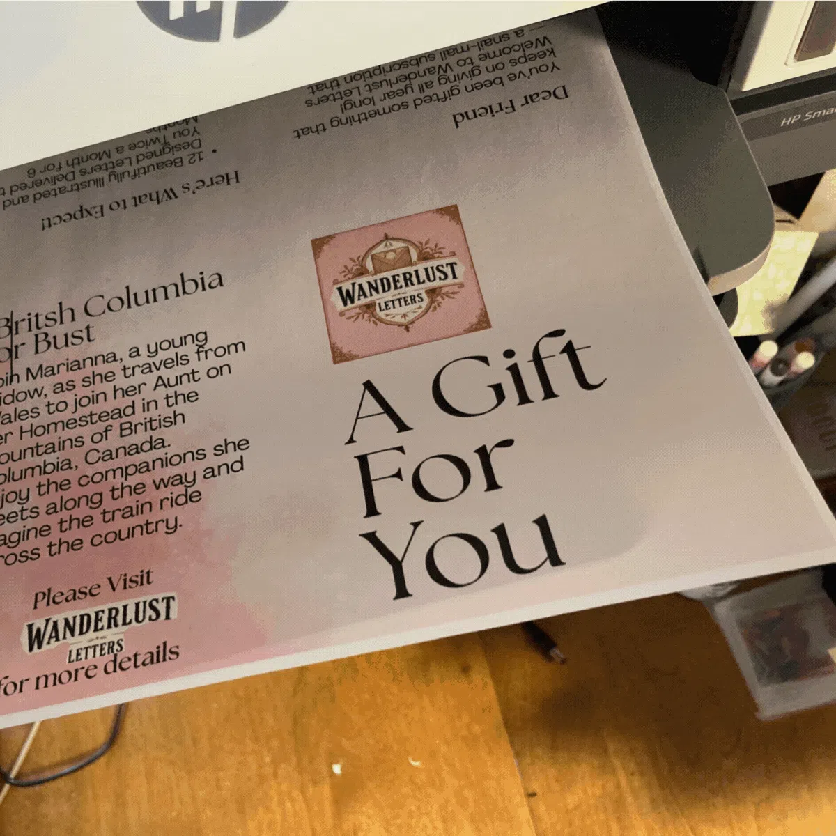 If you’re gifting Wanderlust Letters, we’ve created a printable card for you to present to the recipient on holidays or special occasions. This gift printout introduces Wanderlust Letters and builds excitement for the letters to come. It’s perfect for Christmas, birthdays, Mother’s Day, or any other celebration. Additionally, we offer an email attachment that you can send to a distant friend or loved one—it's entirely up to you!
